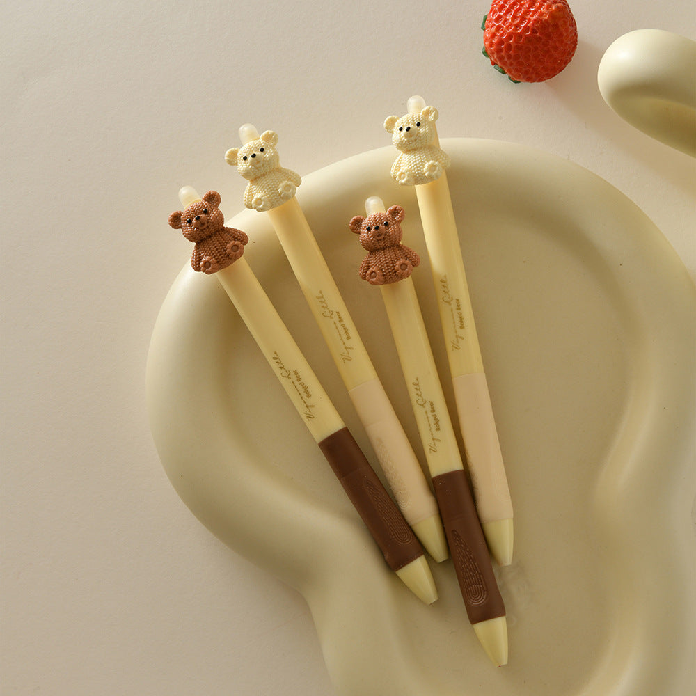 Cheese Bear Erasable Gel Pens – Soft Grip, Black & Crystal Blue, Brush Pen, ST Smooth Writing
